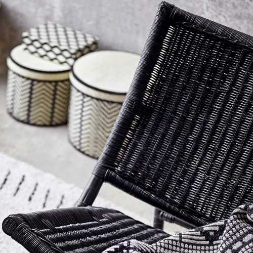 The Baz lounge chair is foldable and its seat and back is made of rattan. Seat height cm: 35. Seat depth cm: 42. Variations in size & shape may occur due to materials. Max weight kg: 140. Delivered unassembled.