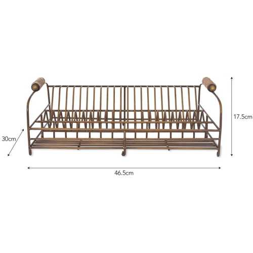 Make washing up less of a chore with the vintage inspired Brompton Dish Rack. Produced with a Wirework frame and an Antique Brass finish, it can hold up to 21 plates with a separate compartment for glasses, mugs or cutlery.Designed with two wooden handles to move with ease when needed. The piece looks striking in both crisp white and urban grey kitchens, to suit all decors.