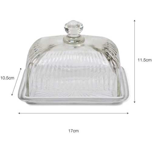 Offering extra style on the breakfast table the Cornbury Butter Dish is both classic and stylish in design. Its beautiful shape crafted in Pressed Glass will happily house a standard block of butter and keep it at the perfect temperature ready for to spread on freshly toasted bread.The classic ribbed glass design features a practical easy to grip top for lifting and moving effortlessly. The flat base makes it easy to store on the kitchen worktop or in the fridge ready for its next use.