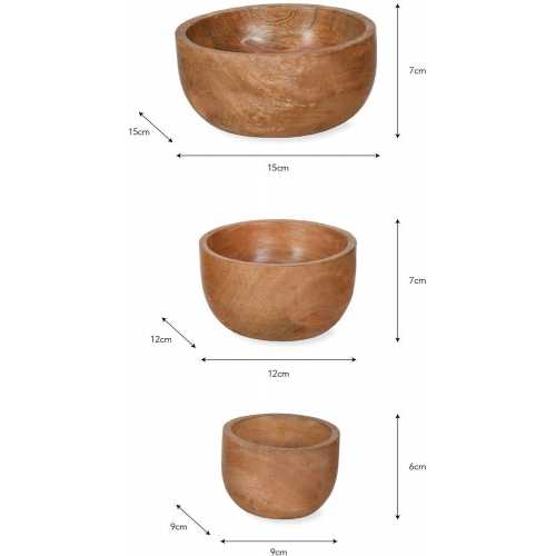 Where our Winderton and Fiskardo nibble bowls are perfect for dips and olives the Midford are designed for dry snacks and sides. The crisps for the dip. The nuts to the olives. The sprinkles on salads. Made from mango wood with beautiful grained patterns they come as a set of three sizes.