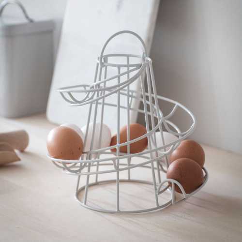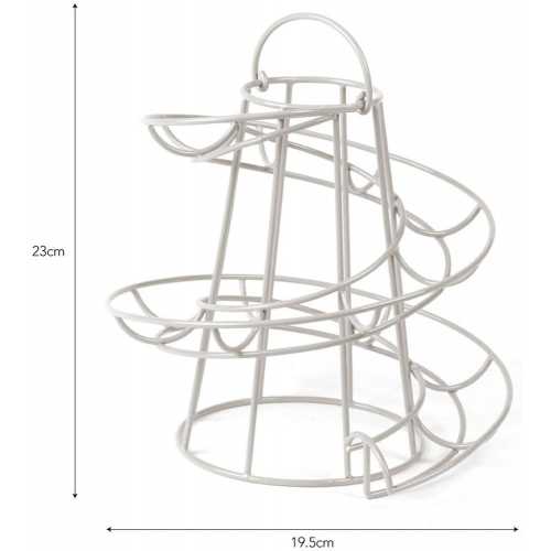 The classic helter skelter design of our signature Egg Run comes in a choice of colourways to suit every kitchen. The Wirework shape with carry handle stores eggs in date order before they're added to homemade bakes or indulgent breakfasts.This contemporary colour would sit beautifully in both neutral and urban kitchens and looks eye-catching when filled with pale white eggs. Storing up to 16 dependent on size, it's a simple stylish way to display fresh produce in any kitchen. As all eggs are different shapes and sizes, we cannot guarantee they will all roll down the run.