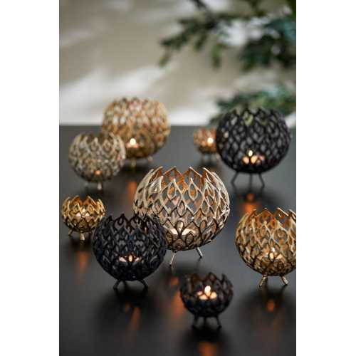 Standing at a height of 18cm and with a diameter of 20cm, this tealight holder is the perfect size to make a statement on a table or mantelpiece. The metallic gold finish adds a touch of luxury and sophistication, effortlessly elevating the aesthetic of your living space.