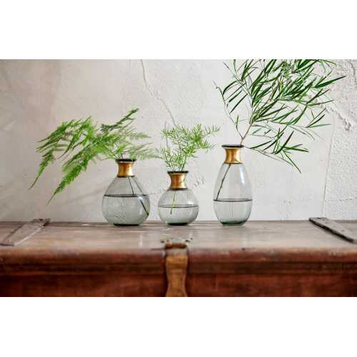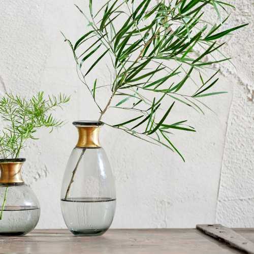 If you're looking for a stylish and elegant way to display your flowers, then look no further than Nkuku's Miza Mini Vase - Grey. This round, tapered vase has a light smoke grey finish and features an elegant brass neck. Perfect for adding a touch of vintage charm to your decor, this vase is sure to become a favourite in your home.