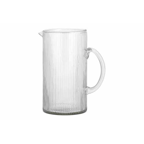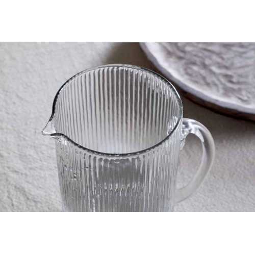 This elegant jug features a timeless silhouette and a subtle ribbed texture that adds depth and interest to the design. Made from recycled glass, it is perfect for both everyday use and special occasions. The clear finish and classic shape make it a versatile addition to any table setting.