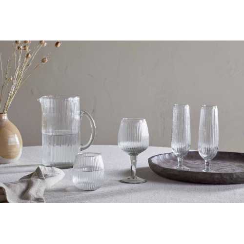 This elegant tumbler features a timeless silhouette and a subtle ribbed texture that adds depth and interest to the design. Made from recycled glass, it is perfect for both everyday use and special occasions. The clear finish and classic shape make it a versatile addition to any table setting.
