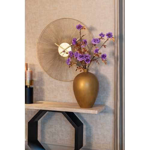 Introducing the Richmond Interiors Audrey Wall Clock, a stunning piece of designer home decor that is sure to captivate attention and enhance any living space. With its fanned out thin metal face and small gold round core, this clock exudes elegance and sophistication. The dimensions of 90cm height, 90cm width, and 3.5cm depth make it a prominent feature on any wall, commanding attention and adding a touch of luxury to any room.