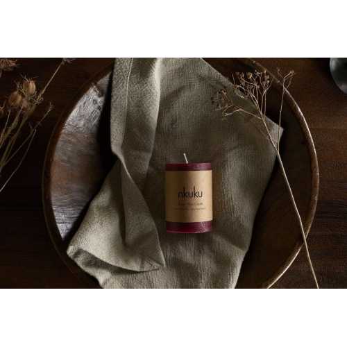Nkuku Rustic Soy Blend Mini Pillar Candle - Dark Cherry