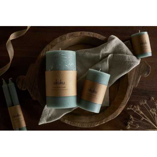 Nkuku Rustic Soy Blend Pillar Candle - Sage Green - Small