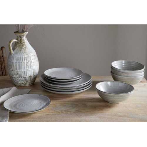 Nkuku Valinha Earthenware Dinnerware Set - Grey (Set of 12)