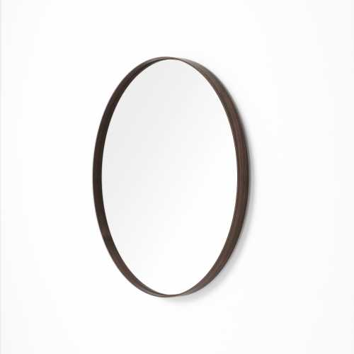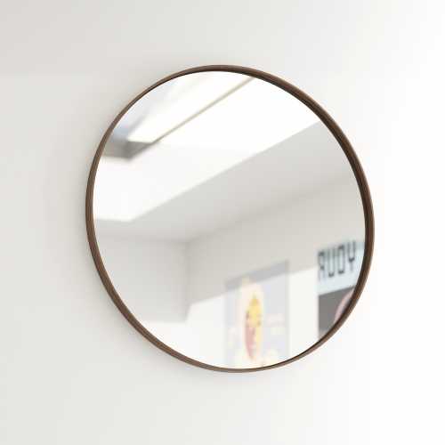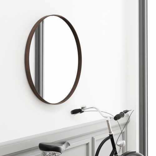 Wall mirror 'Glance 660' is a perfect hallway mirror. As a bathroom mirror the generous size and sophisticated craftsmen made frame make it so much more than just a mirror. In bedrooms and sitting rooms, itâs a decorative statement piece that opens up the space, brightens up a wall and brings light into a room. A clever hanging fixture creates a small space between the wall and the oak frame edge. The mirror appears to float giving âlightnessâ to its appearance. The fine front edge oak frame profile contrasts with the deep side profile adding visual interest. Made from sustainably harvested natural American walnut and walnut veneers, selected for their richness of colour, beautiful grain pattern and traditional hardwood durability. Edges are carefully hand sanded, surfaces are smooth to the touch. Finished in a matt, water resistant lacquer. Design by Lincoln Rivers